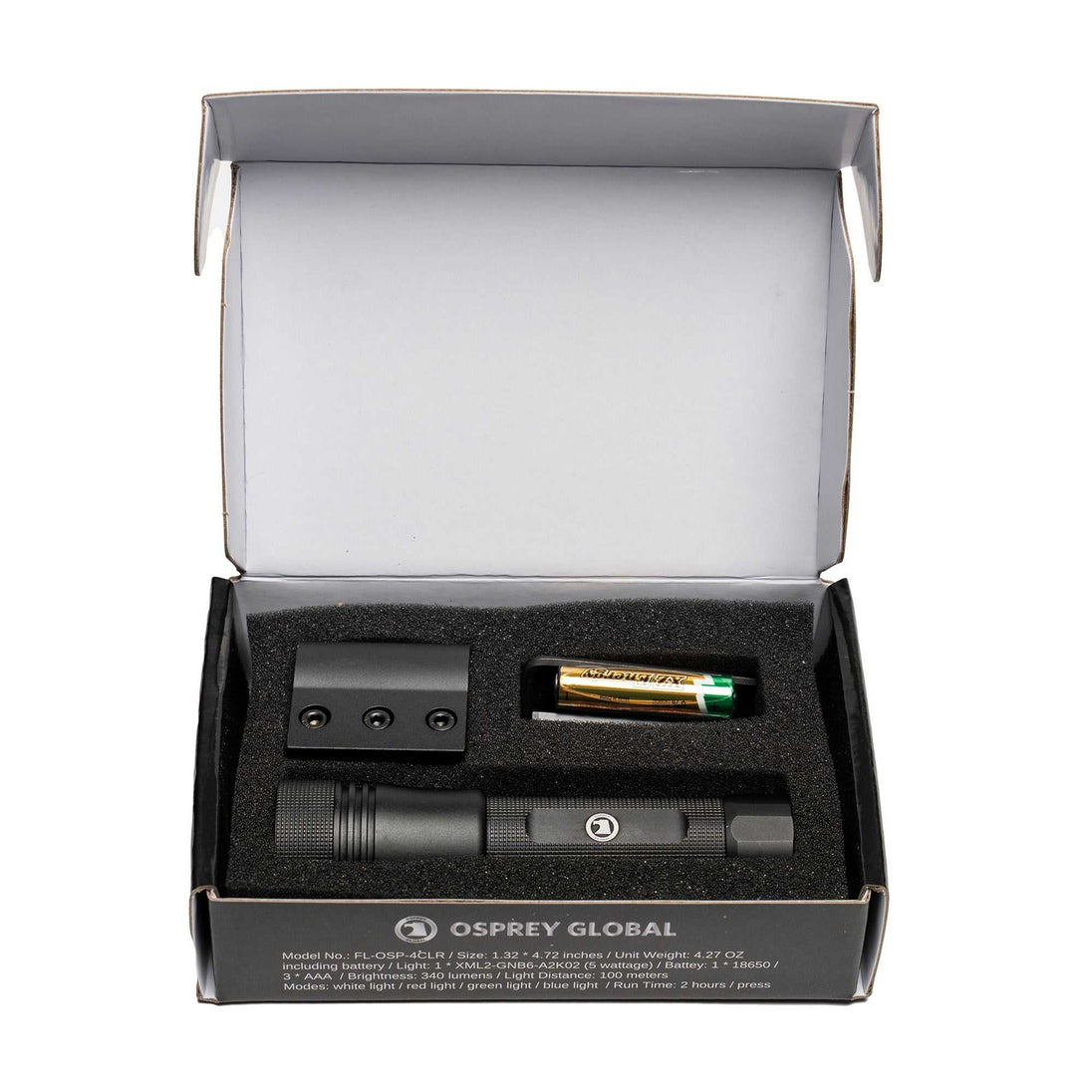 The 4CLR is a tactical light that includes 4 color focusing modes with picattiny mount. It has a convenient mounting system so you can take your flashlight on the go or mount it on your rifle. It is backed by Osprey’s industry leading no-nonsense lifetime warranty.