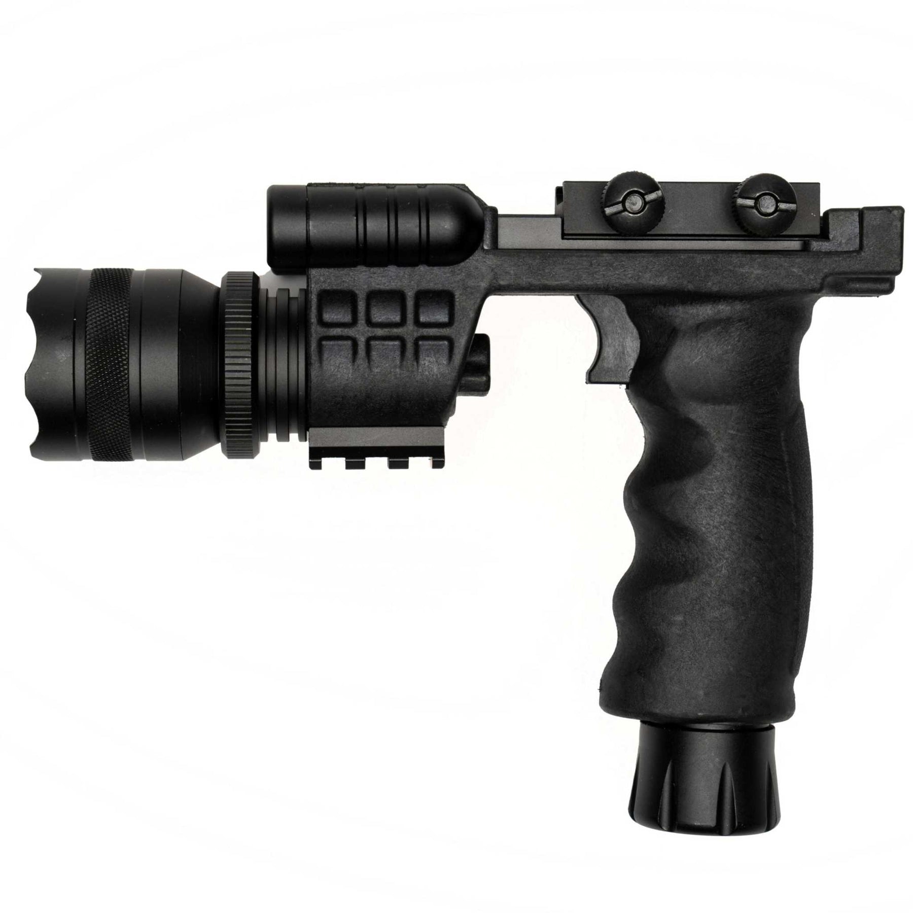 This vertical grip with flashlight and laser is designed to improve weapon control while adding critical functionality for low-light environments. The ergonomic grip enhances stability during shooting, while the integrated flashlight provides clear visibility in dark or confined spaces.